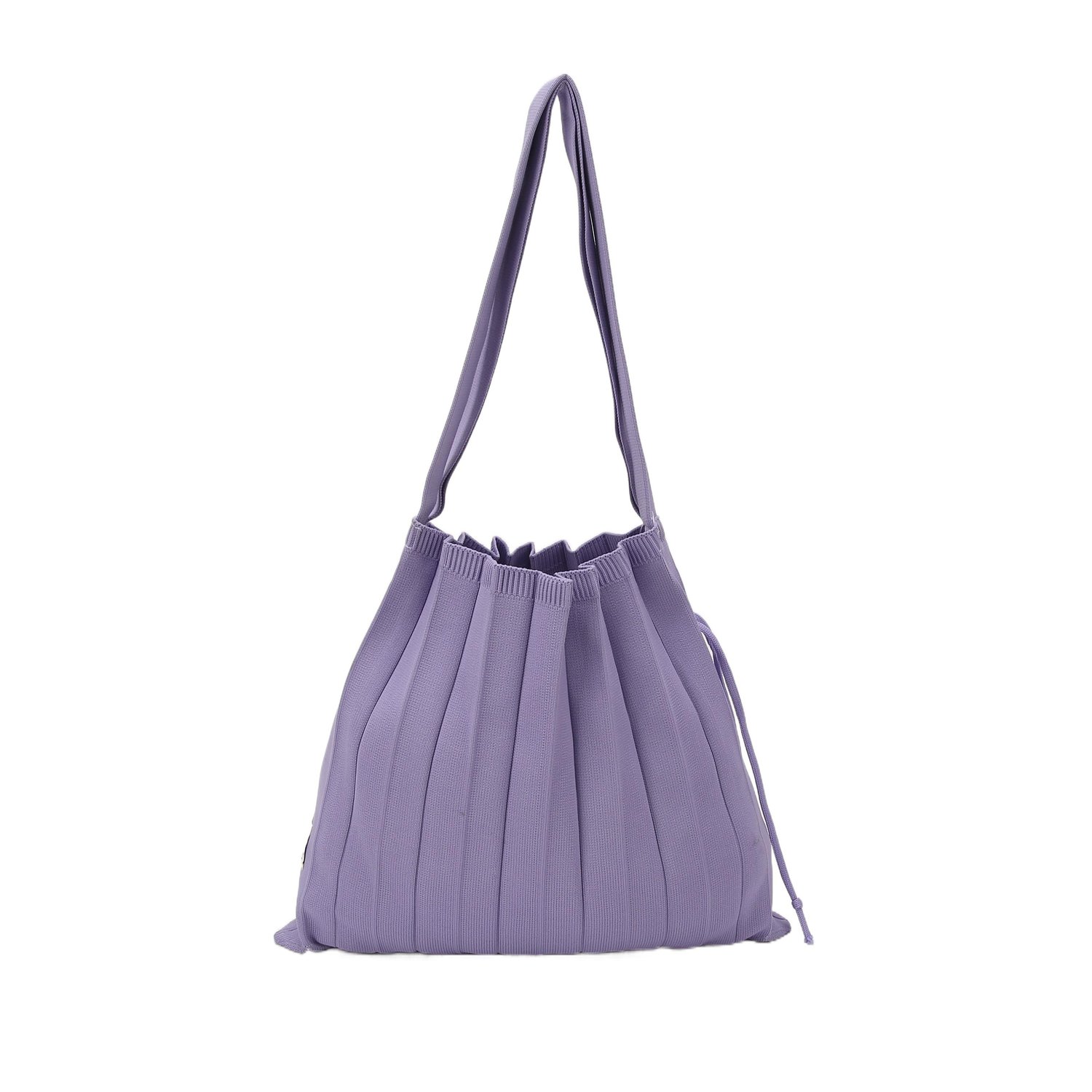 Solid - color wrinkled bucket bag, a simple and fresh - style shoulder bag.