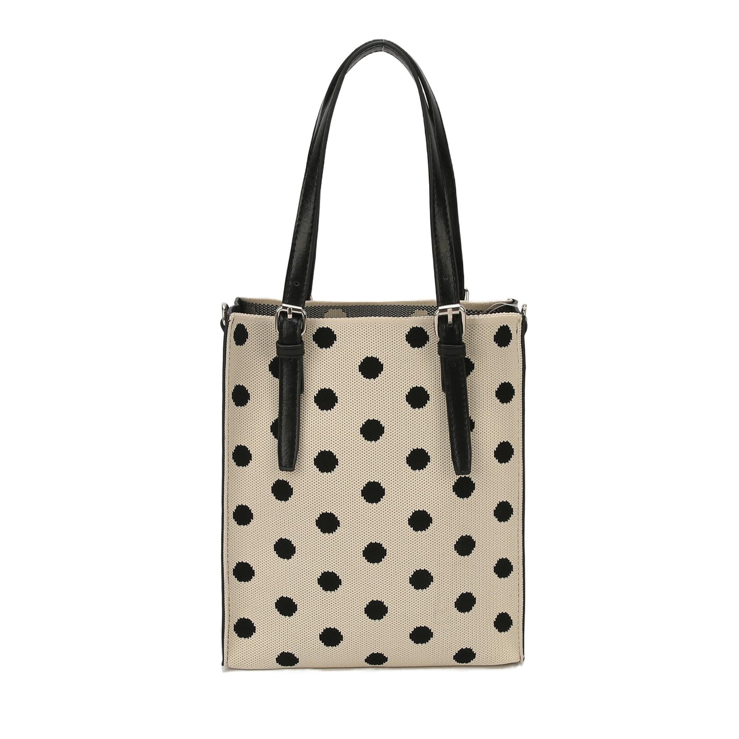 The classic polka dot element is integrated into the tote bag shape, exuding a retro and stylish charm.