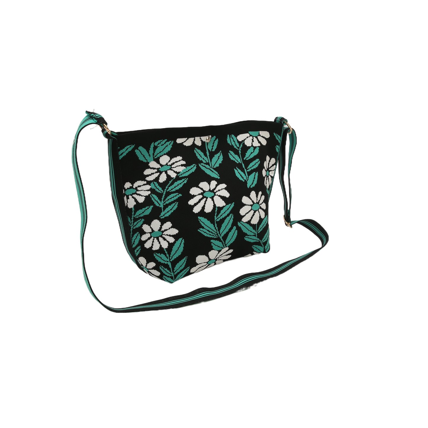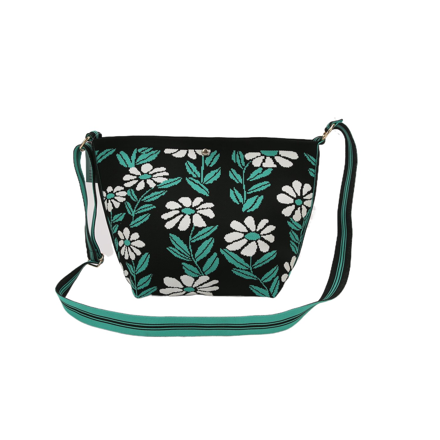 Black background + white small flower print, the cross - body design is fresh and sweet.