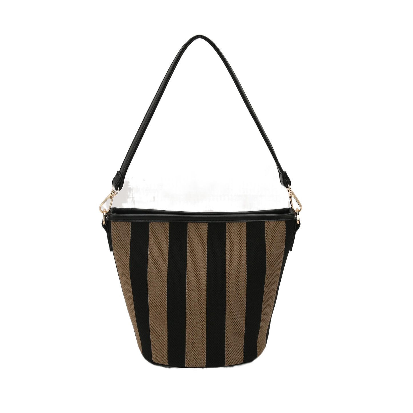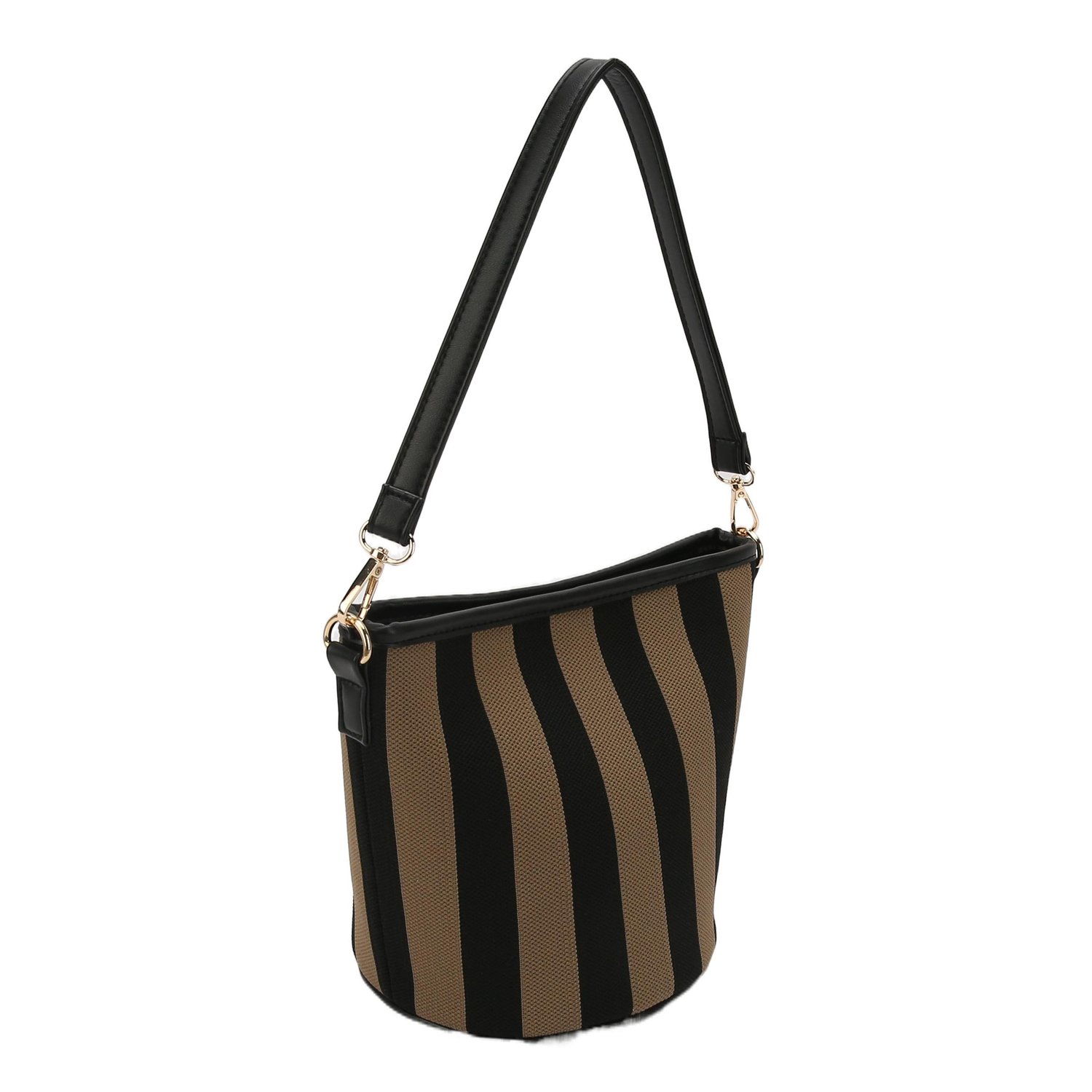 The classic brown and black striped woven bag body,with a classic bucket - shaped silhouette that is both stylish and eye - catching.