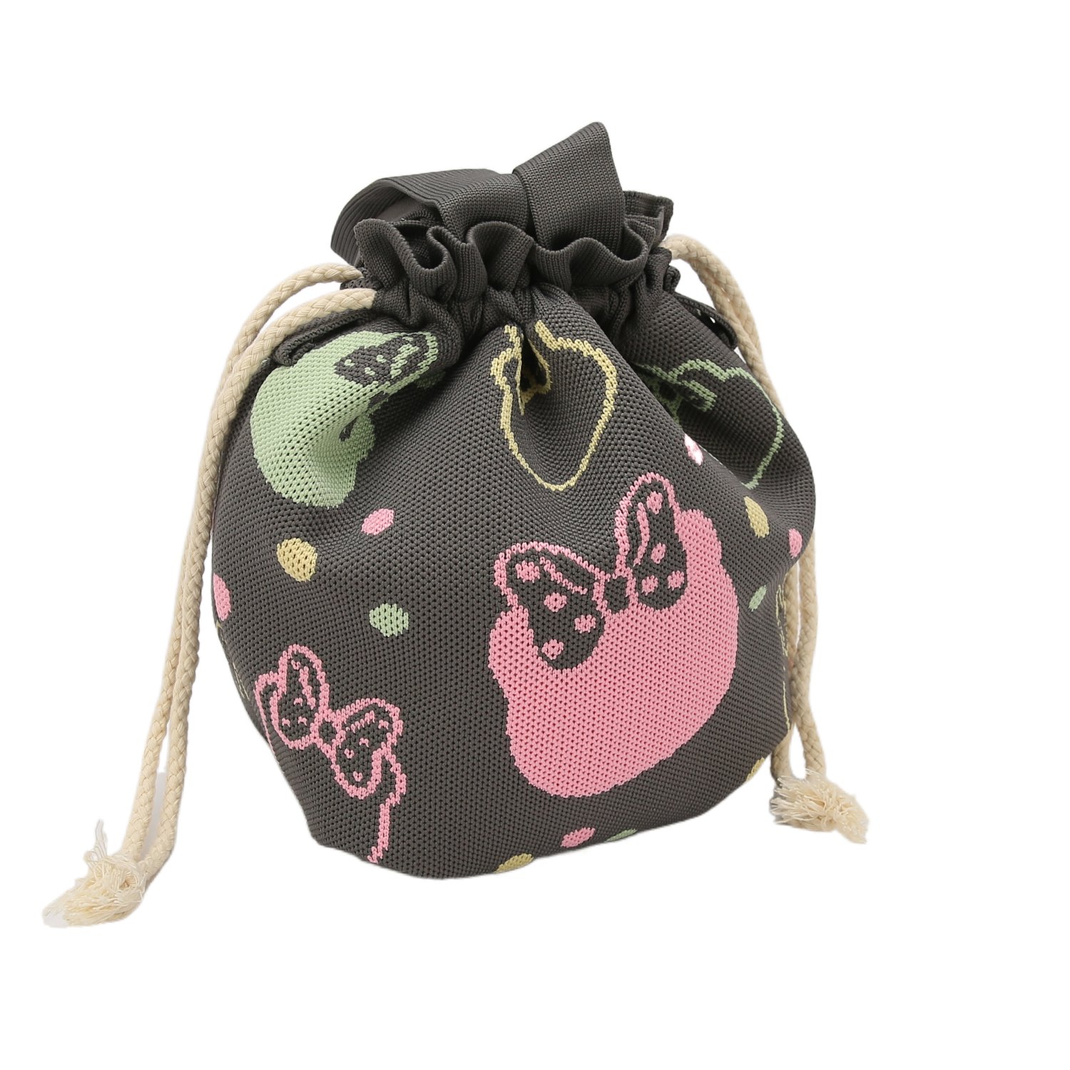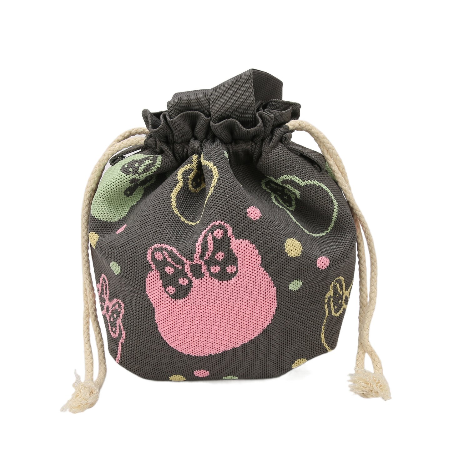 It is paired with a black drawstring and a beige cord, integrating fun elements into a practical storage design.