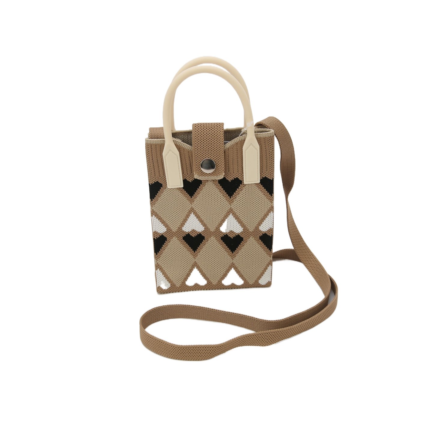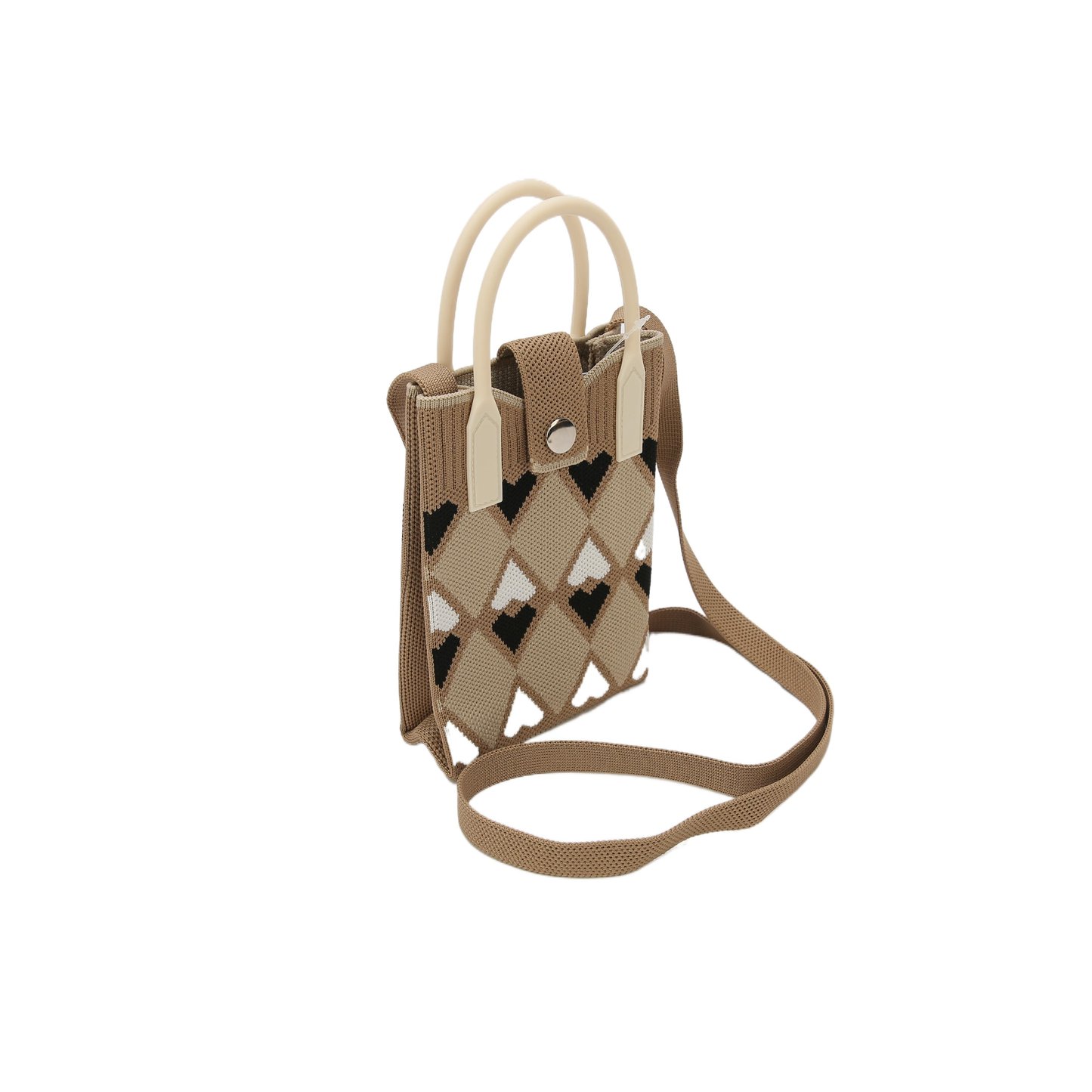 The rhombus - pattern color - blocking knitted crossbody bag takes soft beige as the main color.