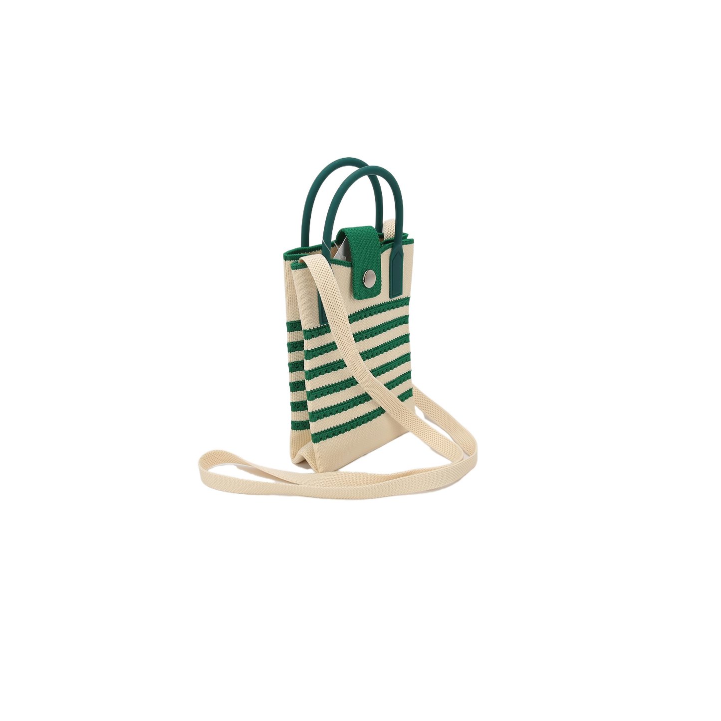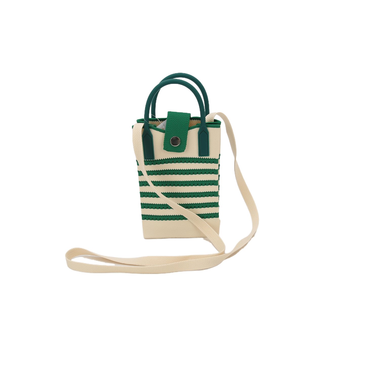 The green and white stripes come with a sea breeze filter. The small size can hold a phone + lipstick. It's super cute when worn diagonally.
