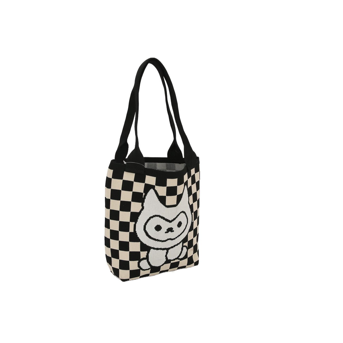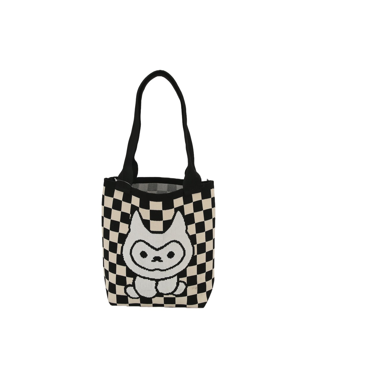 Pack ""Cuteness and Classic""! The black - and - white checkerboard pattern + soft and cute cartoon prints, combined with the tote bag style, is casual and roomy.