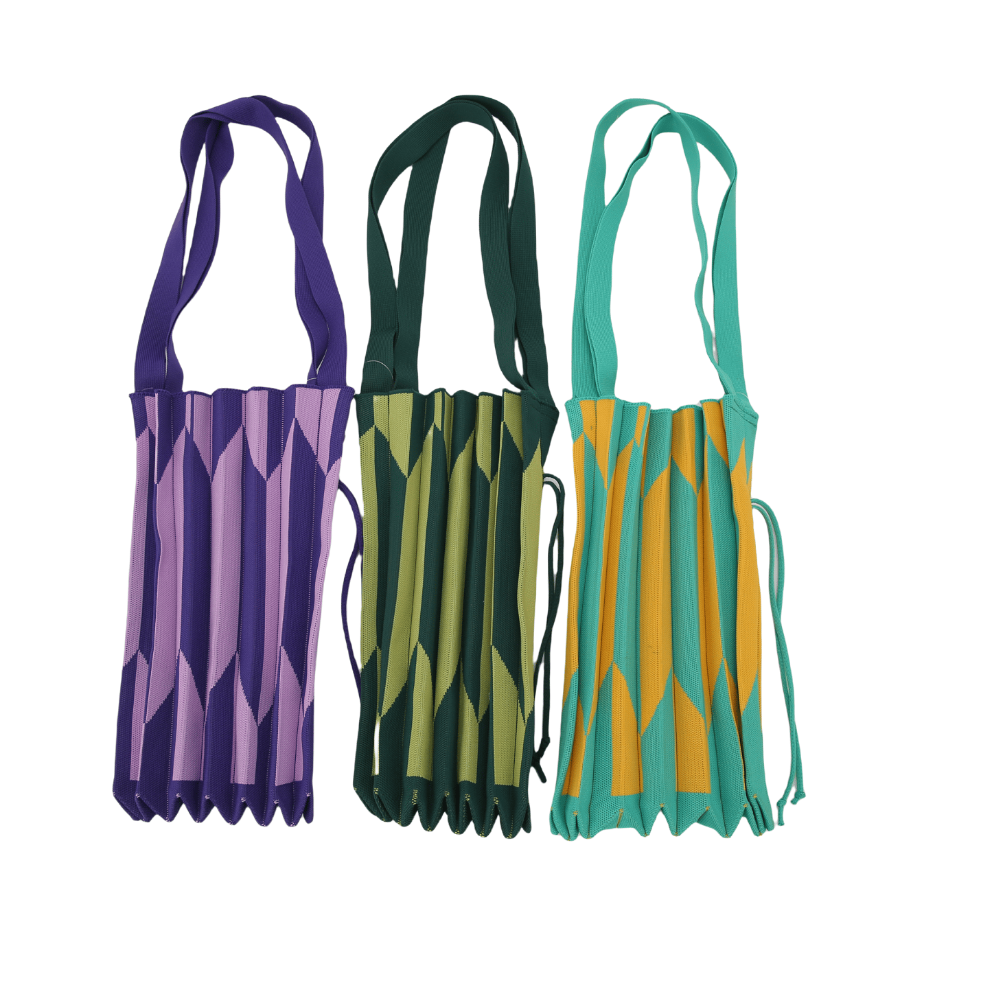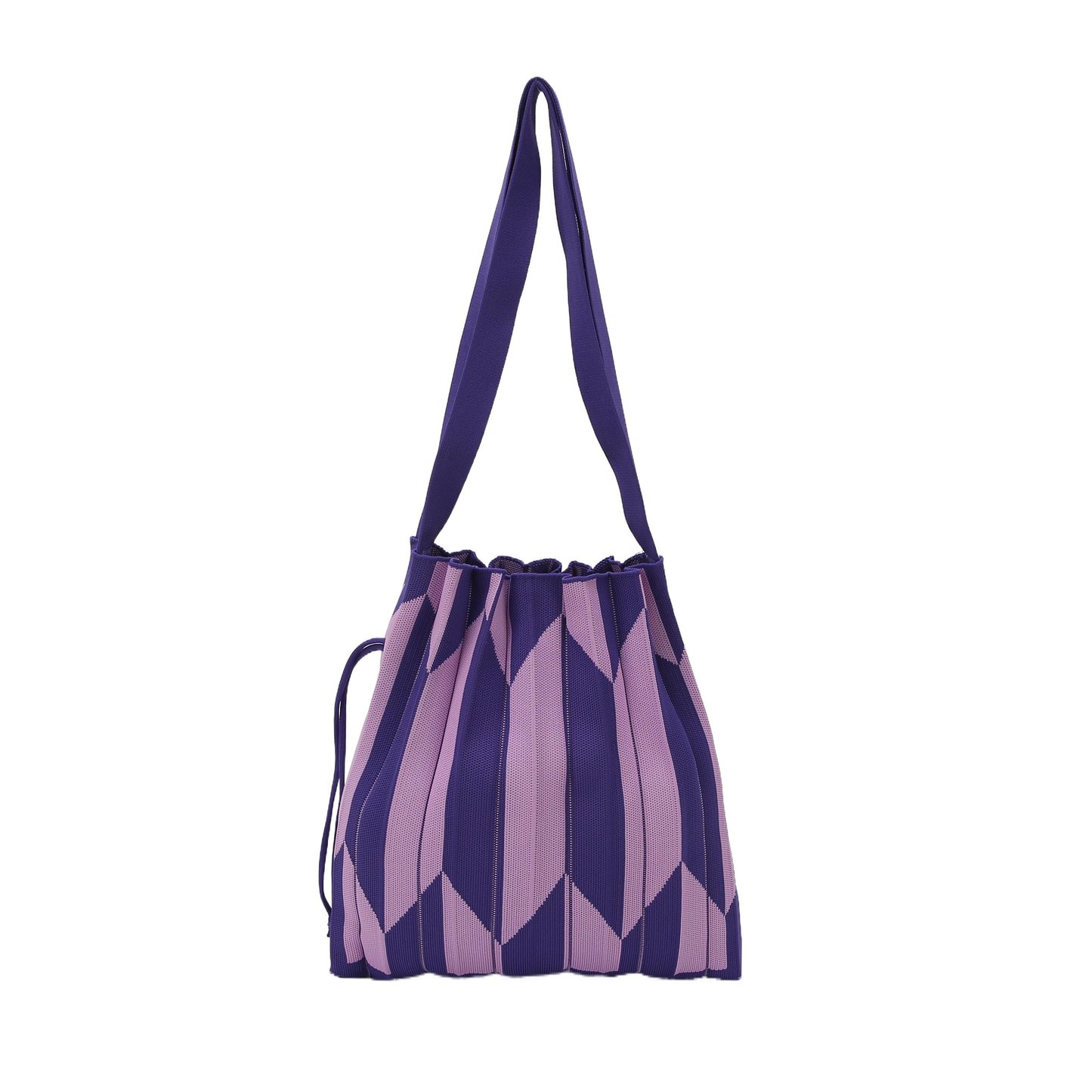 Stripe - color - blocked drawstring bucket bag, a single - shoulder bag with a retro and artistic style.