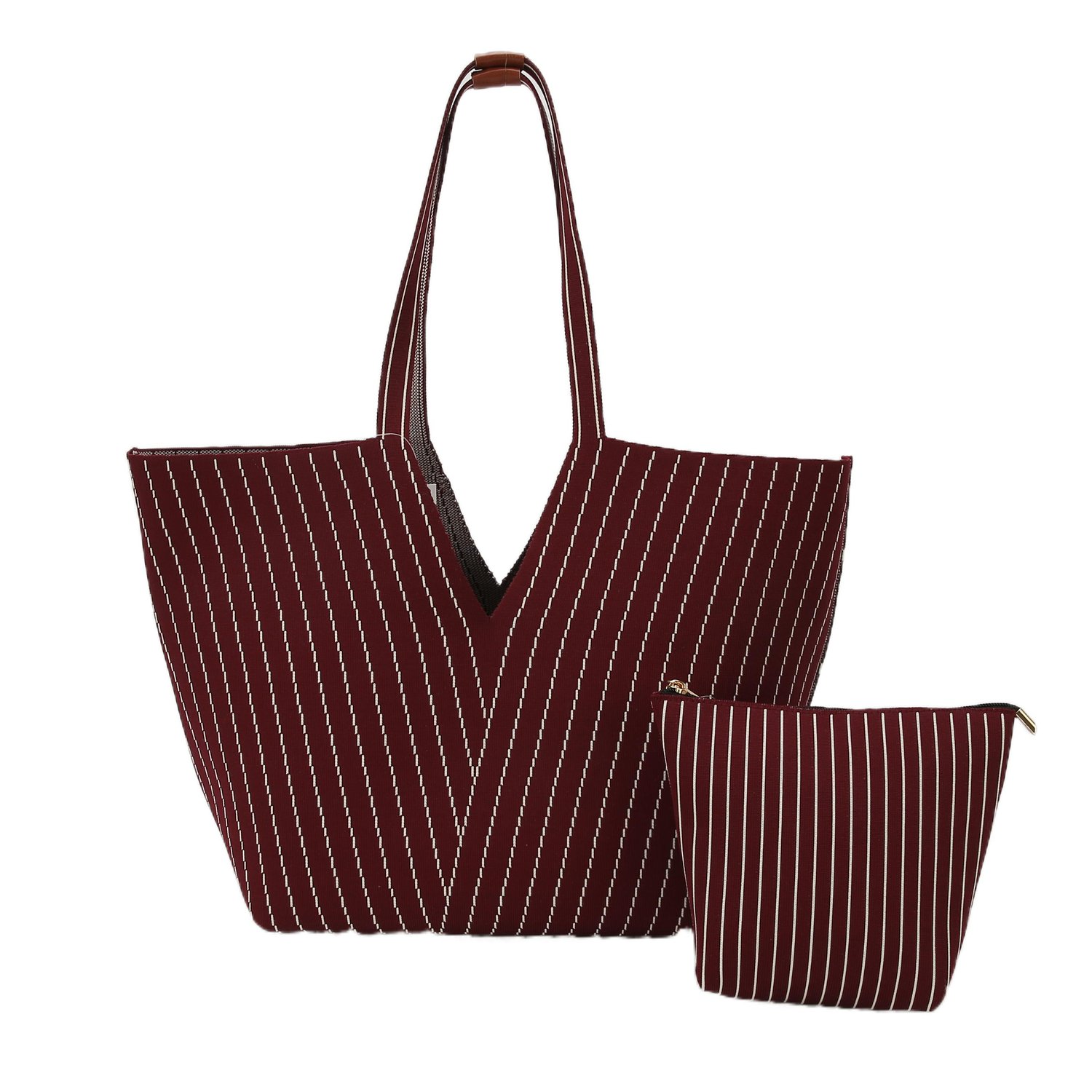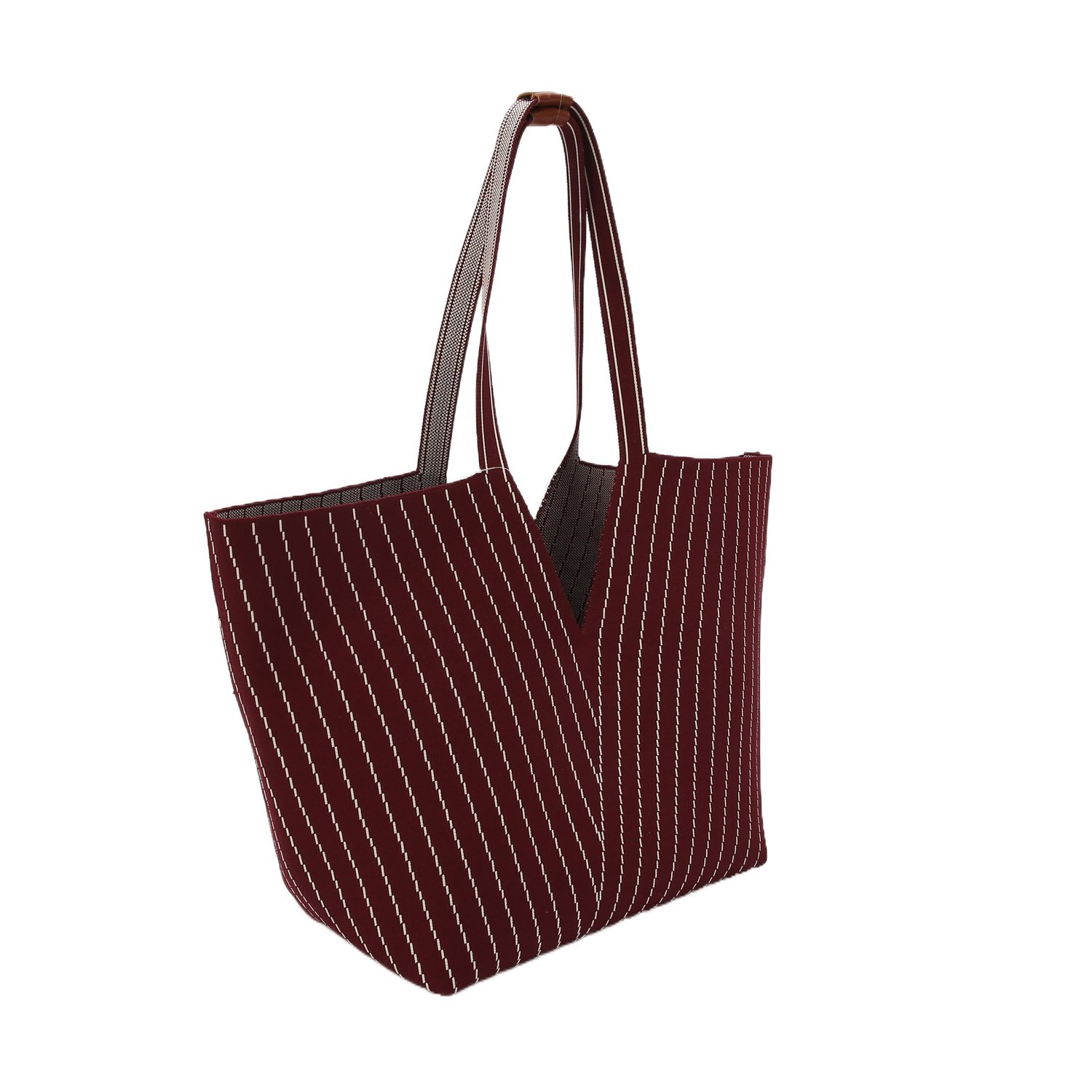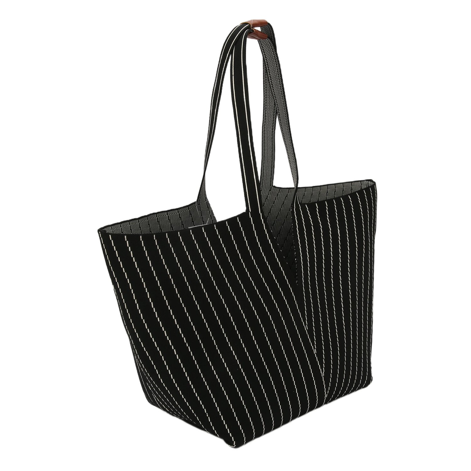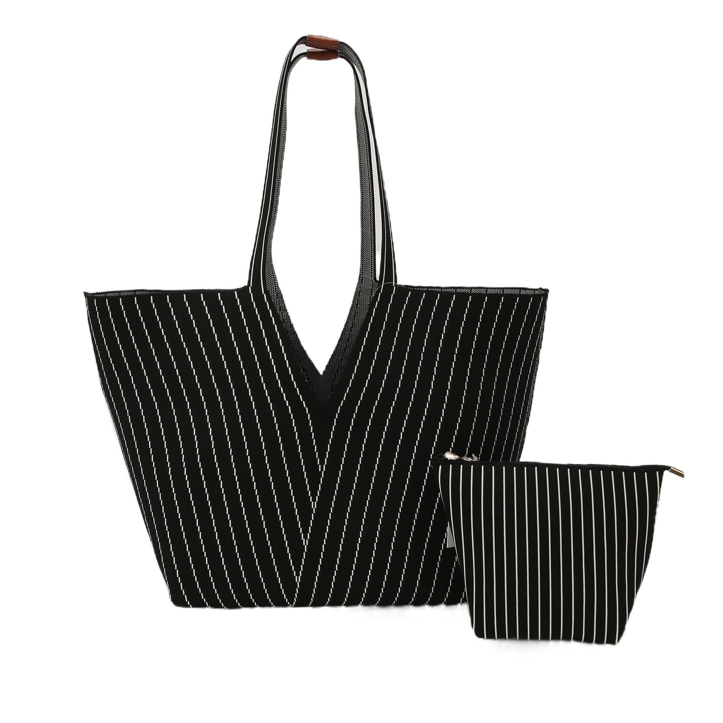 The hand - held tote bag is presented in classic black and white color tones, featuring a neat stripe design.