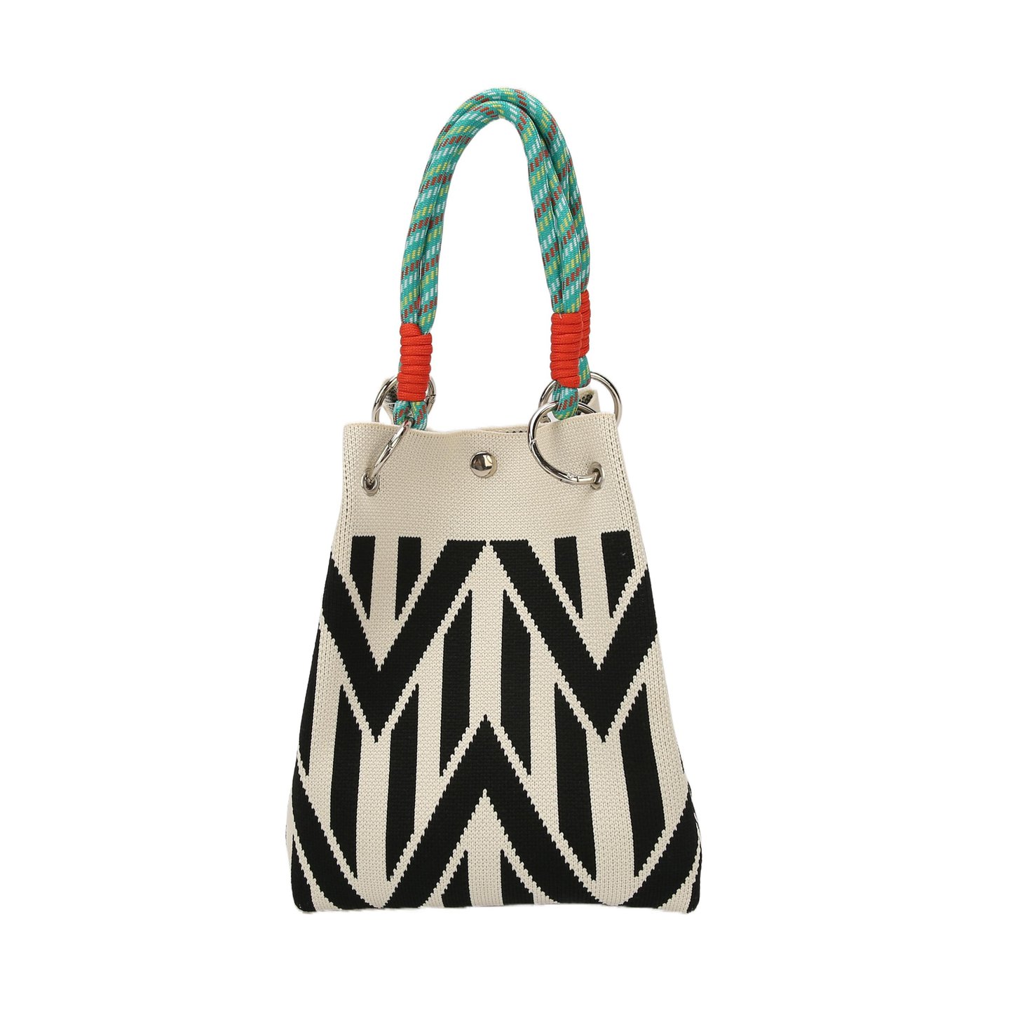 Geometric - pattern Bucket Bag with Color - blocking Woven Shoulder Strap, a Design - forward Handbag.