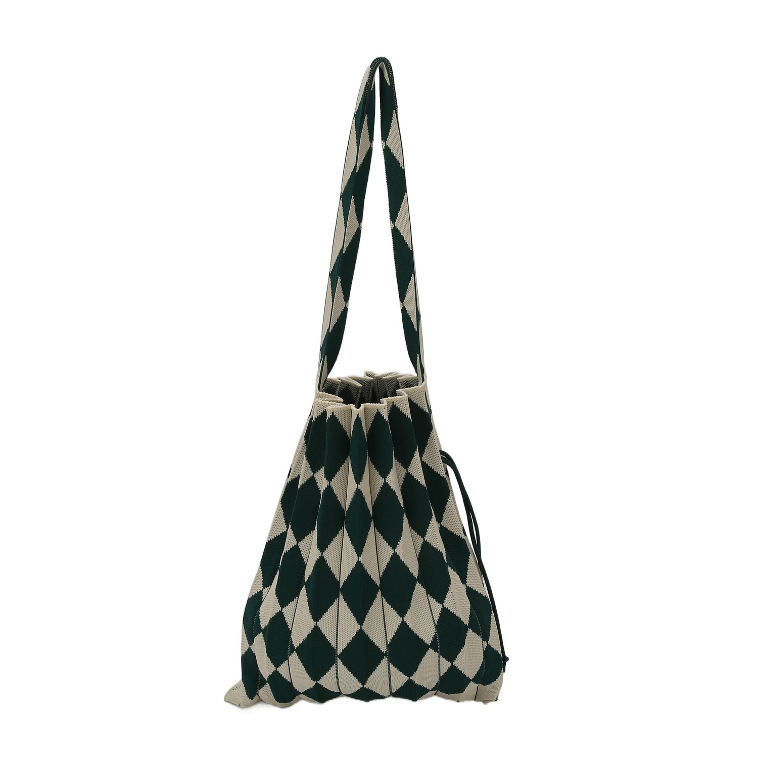Checked Drawstring Bucket Bag, Retro British-style Shoulder Bag.