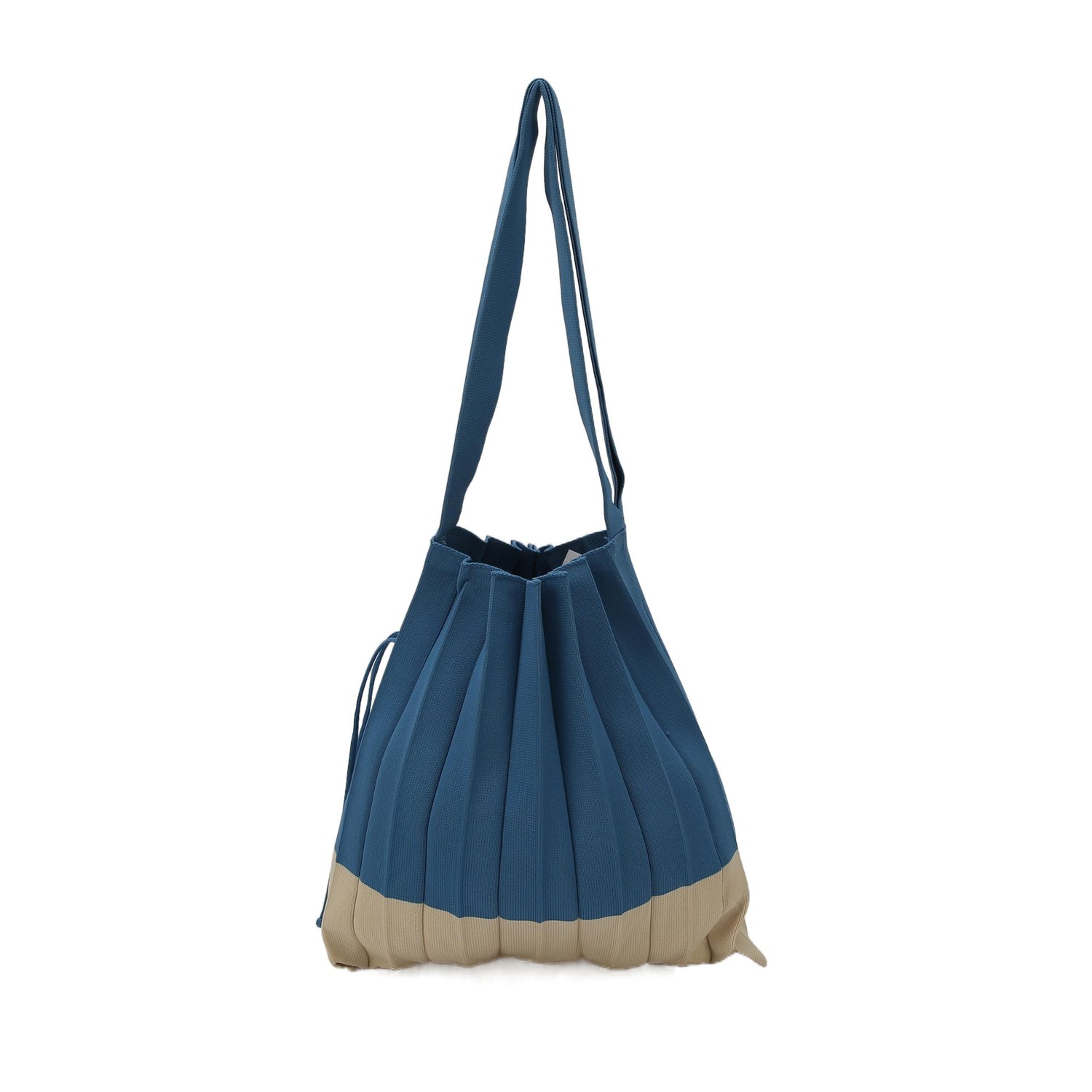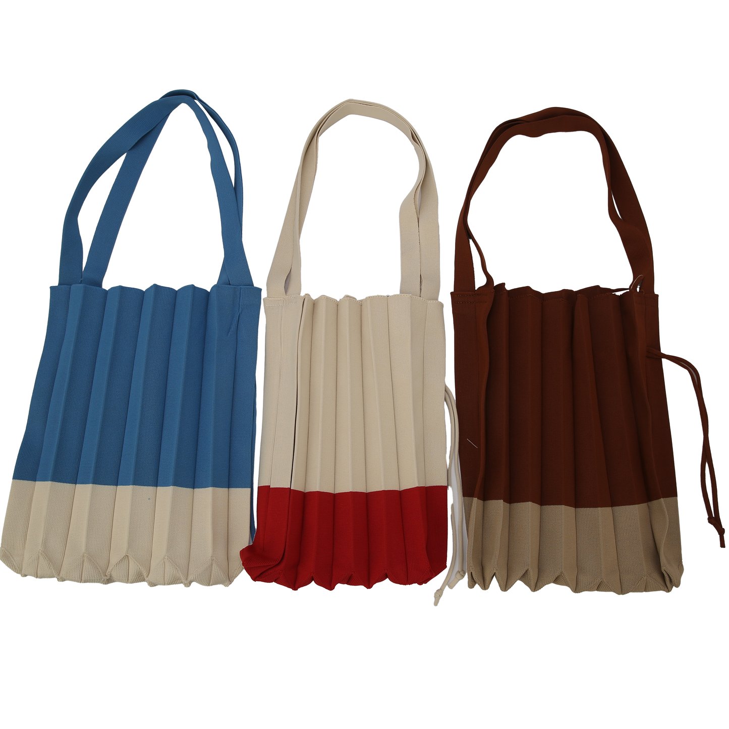 Color - Blocked Pleated Bucket Bag, Simple and Artistic Style Shoulder Bag.