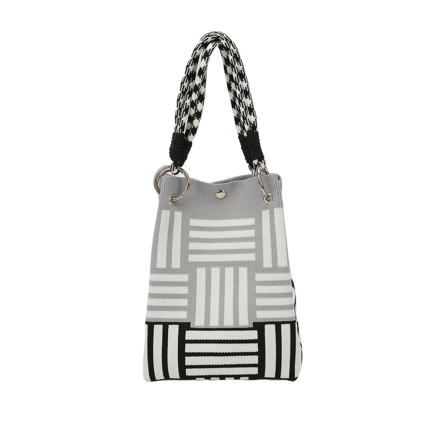 Geometric Patchwork Color - Blocked Woven Handbag, Artistic and Individualistic Shoulder Bag.