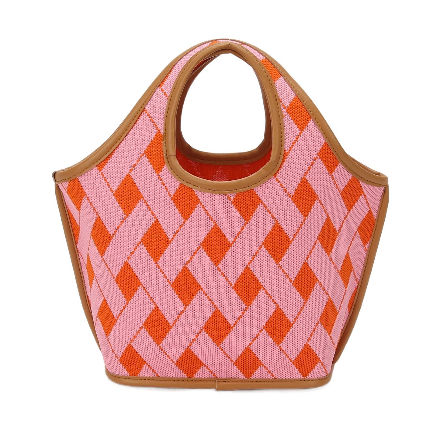 The interwoven pink and orange braided texture,the unique hollowed - out handle design makes it stylish and distinctive to carry.