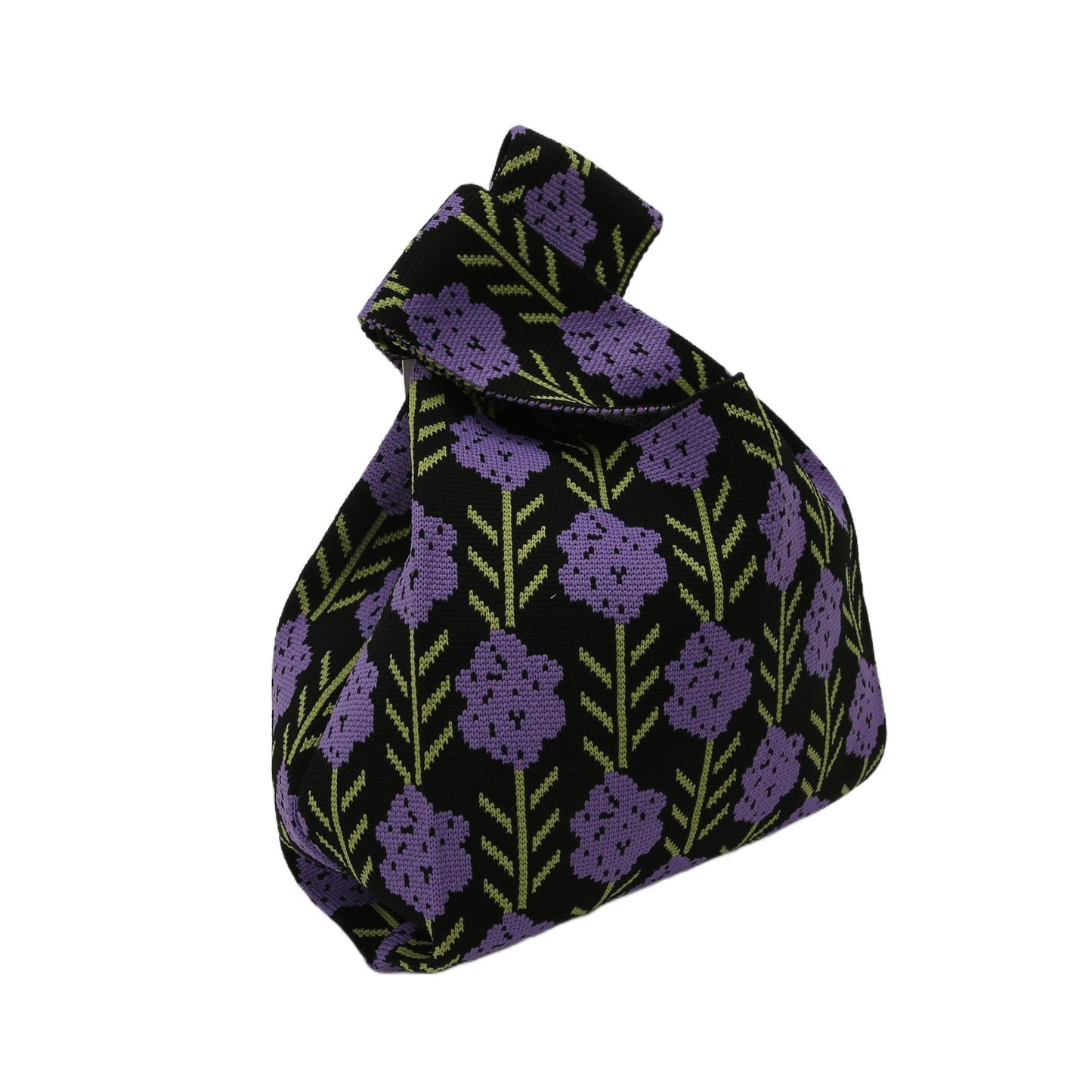 Purple Floral Ruffled Handheld Bag, Retro and Artistic Handbag.