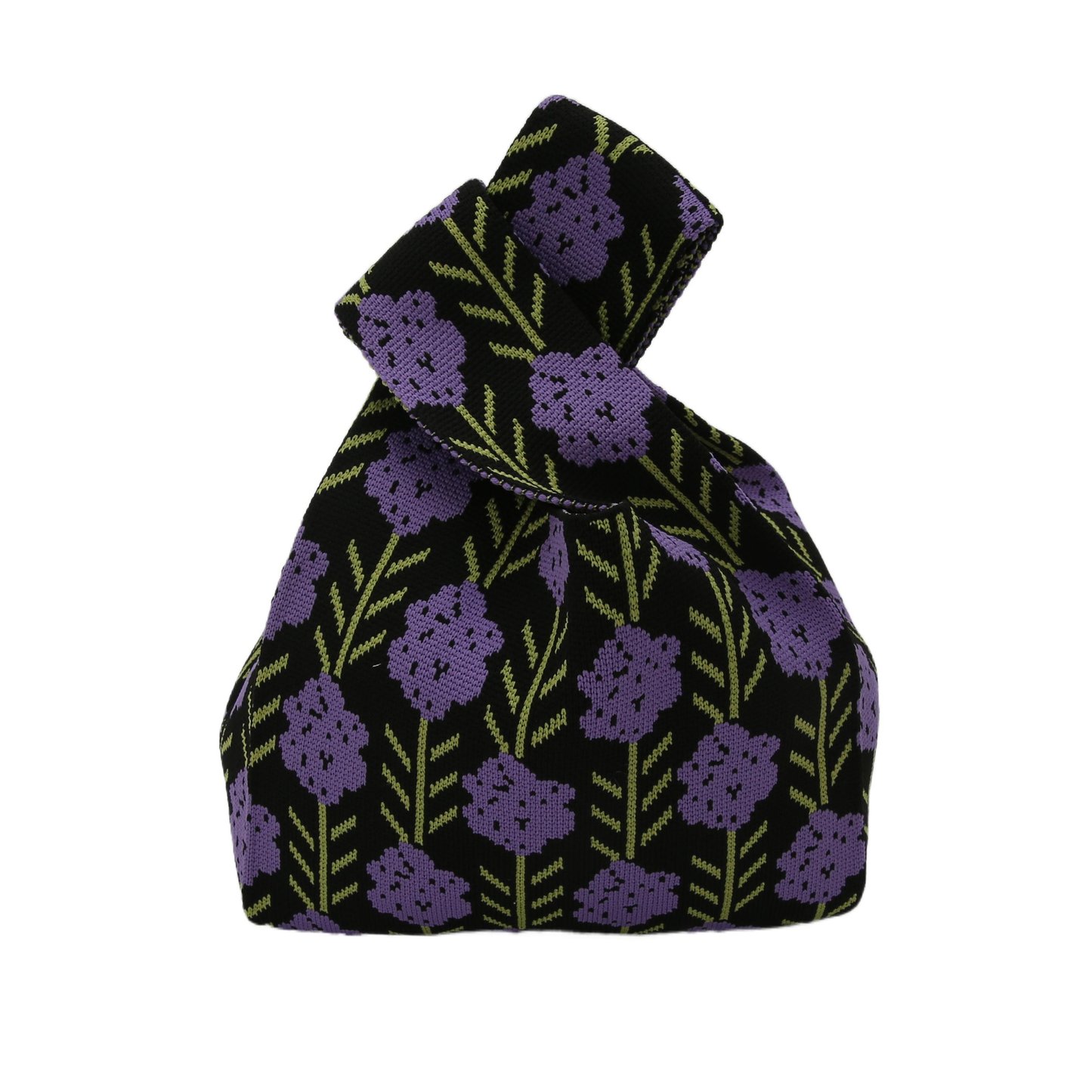 Black background + purple floral patterns, the pleated design exudes a laid-back feel.