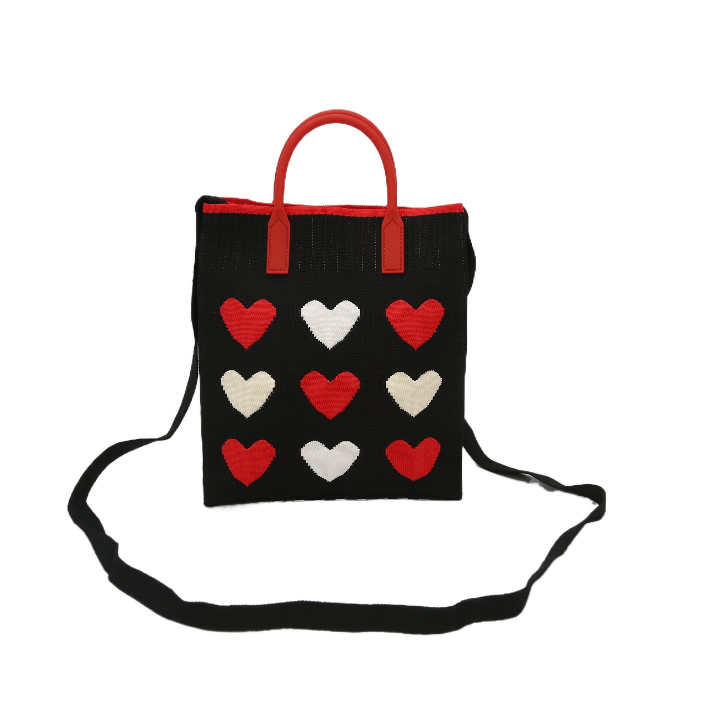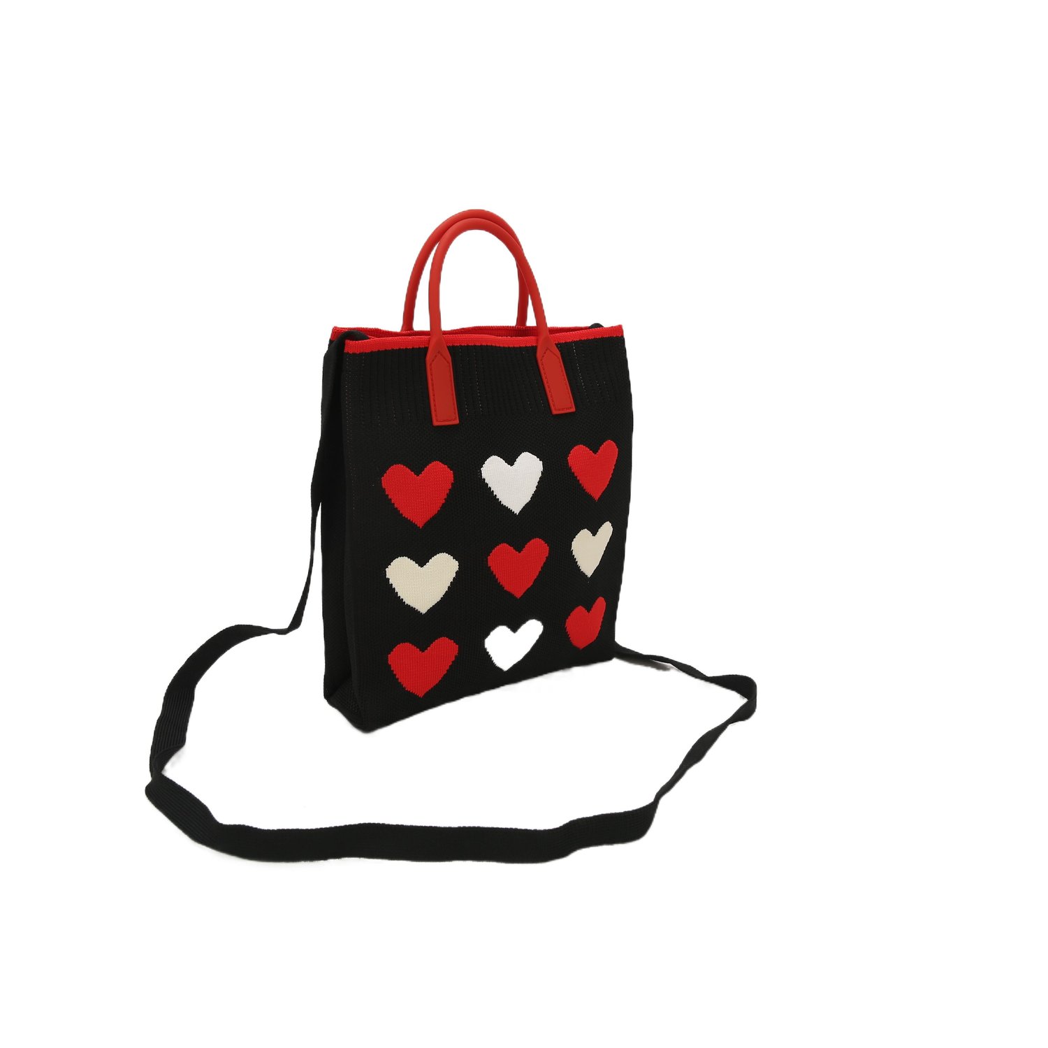 Carry the ""Signal of Heartbeat"" on your body! Black background + red, white and gold hearts, dual - use as a hand - held and cross - body bag.